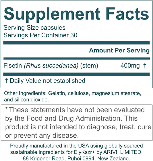 Fisetin - INTRODUCTION OFFER, our Pure Fisetin Supplements provides 60 capsules at 200mg per capsules, Fisetin is a powerful senolytic activator for the removal of senescent cells.