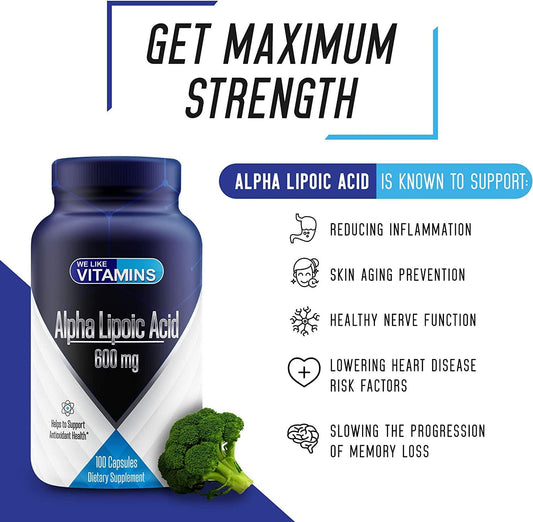 Alpha Lipoic Acid 600mg - Alpha Lipoic Acid Capsules Helps Support Antioxidant Health Along with Free Radical Protection (100 Count (Pack of 1))
