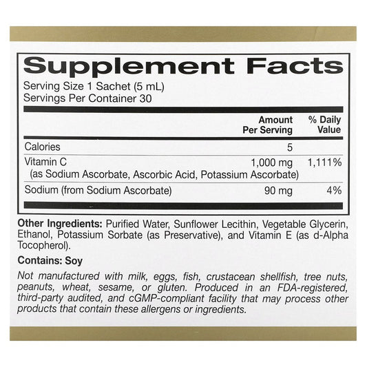 California Gold Nutrition Liposomal Liquid Vitamin C, Unflavored, 1,000 Mg, 30 Sachets