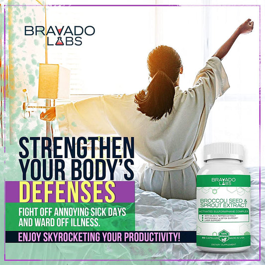 Broccoli Seed and Sprout Extract by Bravado Labs - Sulforaphane Supplement Will Help Strengthen Your Immune System, Improve Focus, and Reduce Pain in Your Joints - Powerful Antioxidant - 60 Ct