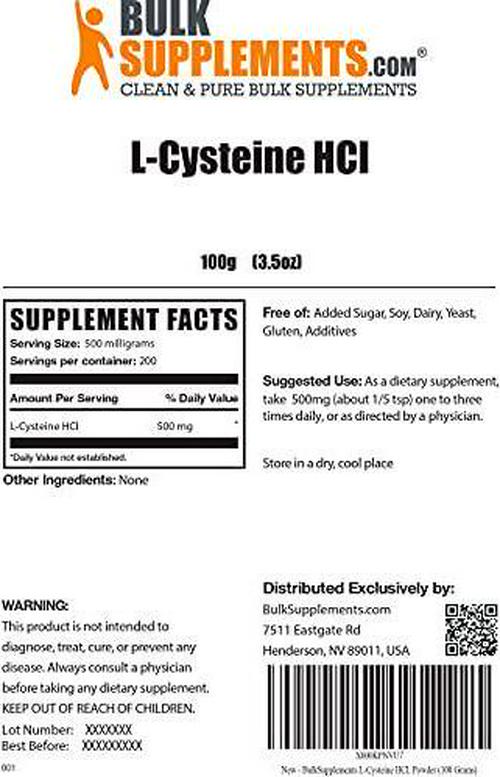 BulkSupplements.com L-Cysteine HCl Powder - Lung Support Supplement (100 Grams - 3.5 oz)