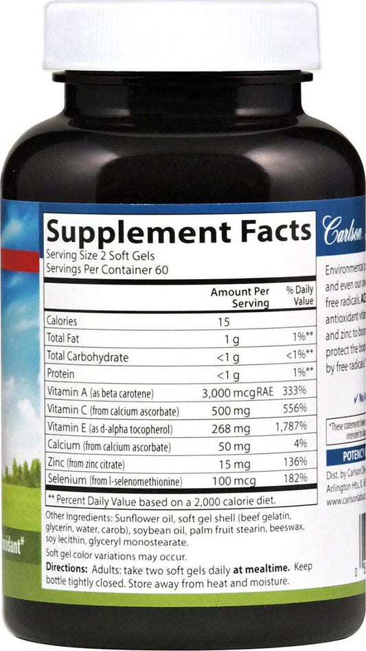 Carlson - ACES + Zn, Vitamins A, C, E + Selenium and Zinc, Cellular Health and Immune Support, Antioxidant, 120 Softgels