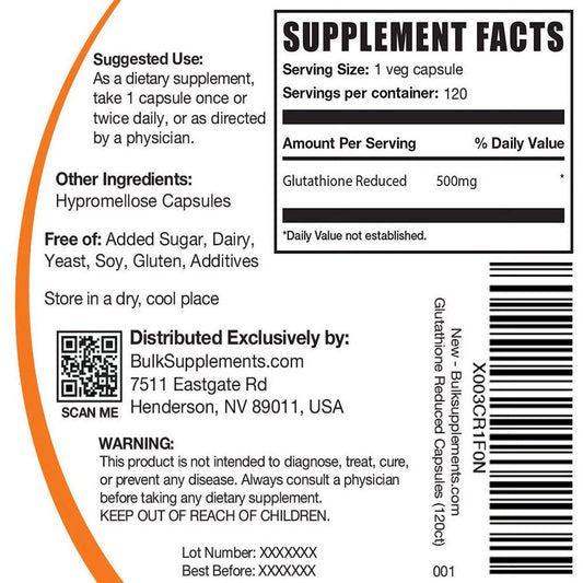 Bulksupplements.Com Glutathione Reduced Capsules, 500Mg - Liver Health Supplements (120 Veg Capsules - 120 Servings)