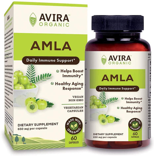Avira Organic Amla for Immune Support - Max Strength 1300mg Serving per Day, Amla Rich in Vitamin C Complex, 2 Pack of 60's - 120 Veg Caps, Non GMO, Made with AML5HS Amla