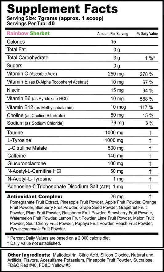 G Fuel Rainbow Sherbet Elite Energy Powder, 9.8 oz (40 Servings)