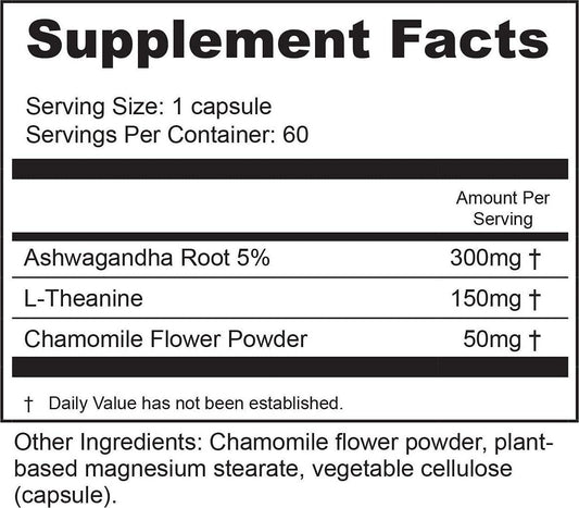 BioActive Nutrients Chill Supplement - Stress Relief, Anxiety Relief - Ashwagandha Pills - Pure, Calm Mood Boost Supplements with Herbs from Nature, Such as Ashwagandha Root - 60 Ashwagandha Capsules