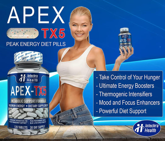 Apex-Tx5 Weight Management Diet Pills & Ultra Energy Supplement, 120 Tablets - Intechra Health