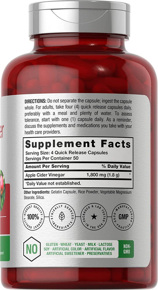 Apple Cider Vinegar Capsules | 1800Mg | 200 Pills | Non-Gmo, Gluten Free Supplement | by Horbaach