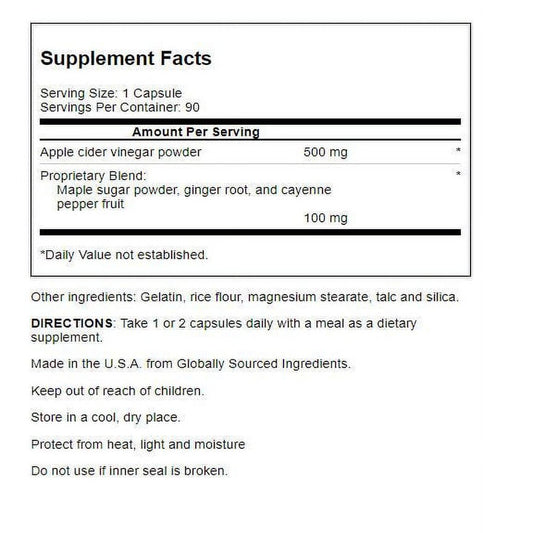 Apple Cider Vinegar Capsules with 500mg Apple Cider Vinegar and 20mg Cayenne Pepper per Serving for Bloating Relief