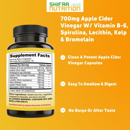 Apple Cider Vinegar Capsules for Women and Men by SHIFAA Nutrition - These Gluten Free Keto Pills Support Digestion, Metabolism and Immune System, Heart Health - Halal - 700 MG 45 Servings