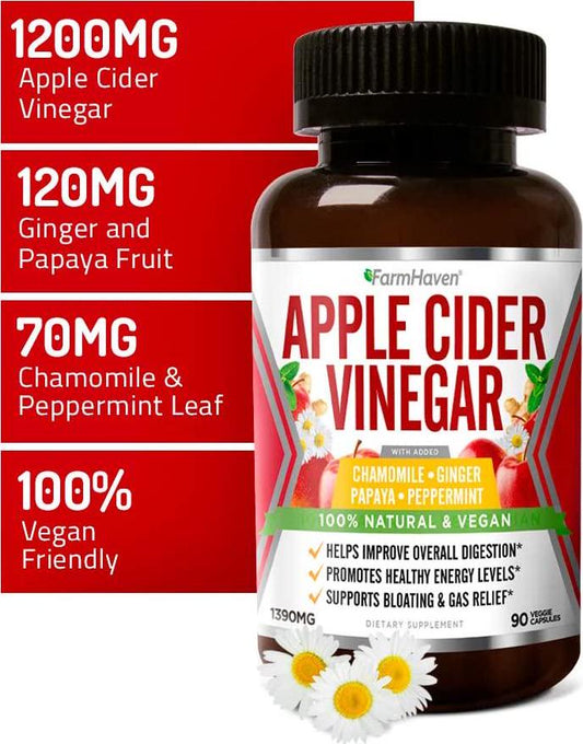 Apple Cider Vinegar Capsules With Ginger, Papaya and Chamomile | 1390mg | Improves Digestion, Energy, Immunity | Soothes Gas and Bloating Issues | Like With Mother | Non-GMO and 100% Natural | 90 Capsules