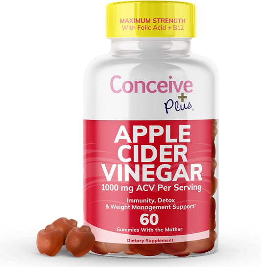 CONCEIVE PLUS Apple Cider Vinegar Gummies-Potent ACV Gummies with The Mother-Delicious Apple Vinegar Gummy for Immunity, Digestive Health, Energy Boost-Vegan, Non-GMO, Gluten-Free-60 Count, Red