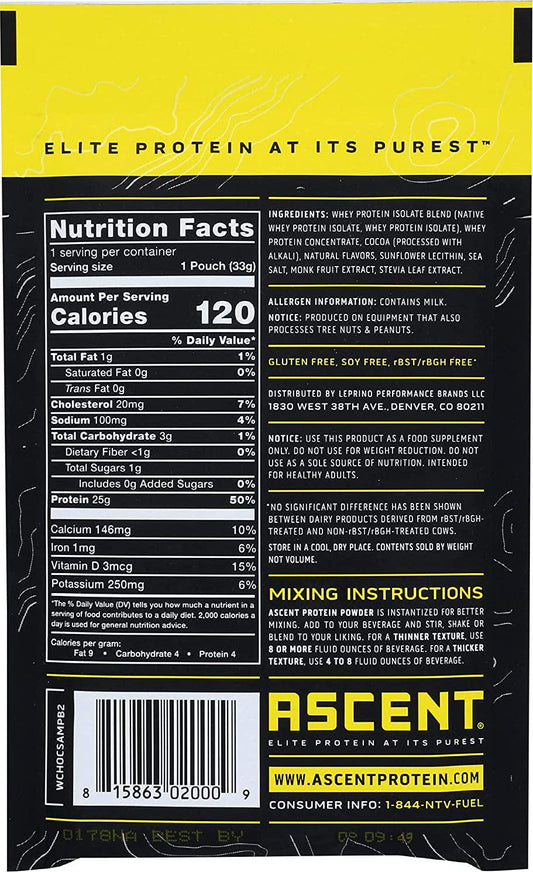 Ascent, Protein Whey Chocolate, 1.16 Ounce, 15 Pack