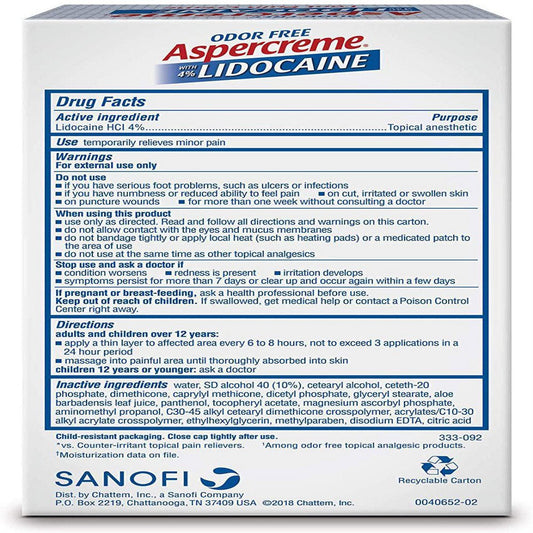 Aspercreme Lidocaine Foot Pain Creme Safe for Diabetic Skin, 4 Oz