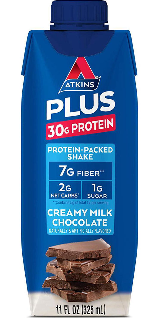 Atkins PLUS Protein-Packed Shake. Creamy Milk Chocolate with 30 Grams of Protein. Keto-Friendly and Gluten Free. (12 Shakes)