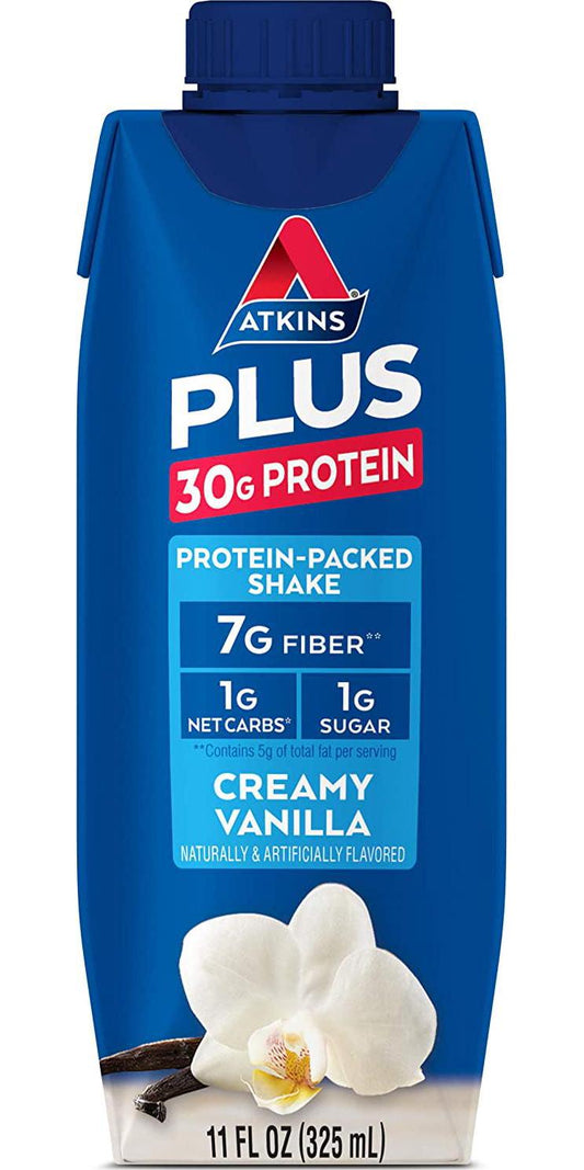 Atkins PLUS Protein-Packed Shake. Creamy Vanilla with 30 Grams of High-Quality Protein. Keto-Friendly and Gluten Free. (12 Shakes)