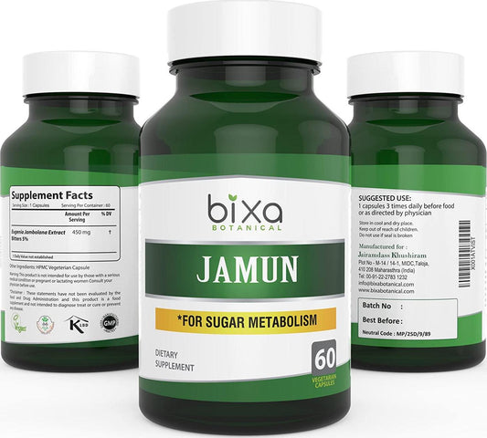 bixa BOTANICAL Jamun Extract(Eugenia Jambolana/Black Plum) Bitters 5%, Ayurvedic Herb For Sugar Metabolism, Herbal Supplement To Improve Digestion, Control Blood Sugar Level Veg Capsules 60 Count