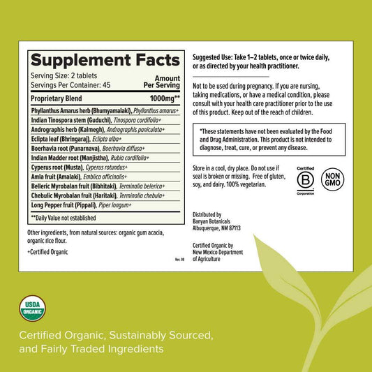 Banyan Botanicals Liver Formula - USDA Organic, 90 Tablets - Cleansing Bitter Herbs to Detoxify The Liver and Gallbladder*