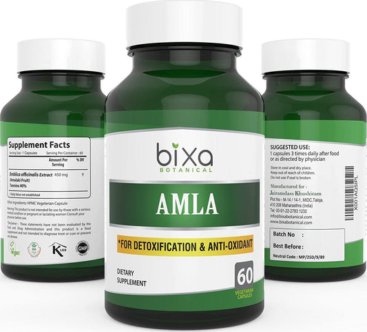 bixa BOTANICAL Amla Extract Tannins 40% Veg Capsules, Ayurvedic Herb For Detoxification Anti-Oxidant And Cardiac Health, Antioxidant Ideal Vitamin C Supplement and Immunity Booster 60 Count (450Mg)