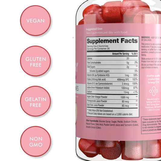 Flat Tummy Apple Cider Vinegar Gummies, 60 Count– Natural Energy, Detoxification, Gut Health Support