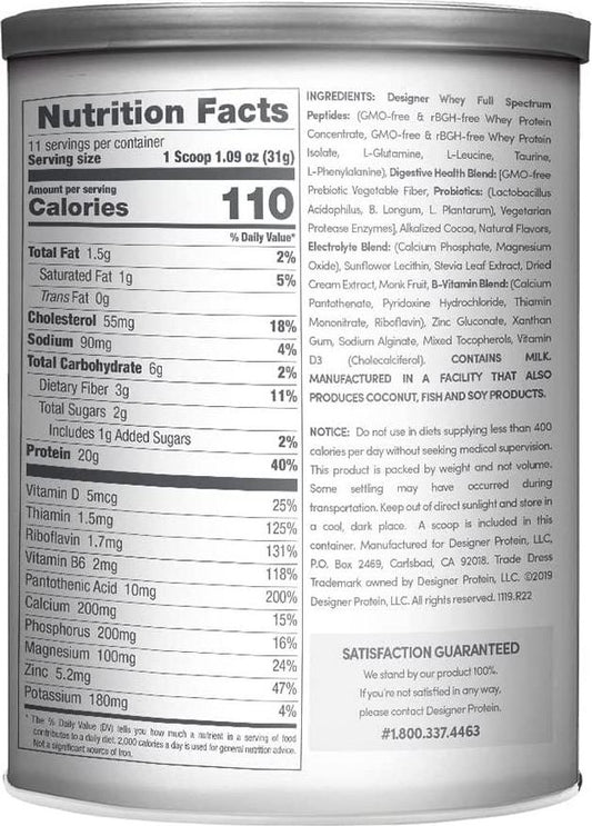 Designer Wellness Designer Whey Natural 100% Whey Protein Powder with Probiotics, Fiber, and Key B-Vitamins for Energy, Gluten-free, Non-GMO, Double Chocolate 2 lb