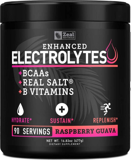 Enhanced Electrolyte Powder (Raspberry Guava 90ct) Sugar Free + BCAA, B-Vitamins and Real Salt - Keto Electrolytes Drinks, Hydration Powder w Potassium, Sodium, Zinc, Magnesium for Hydration and Recovery