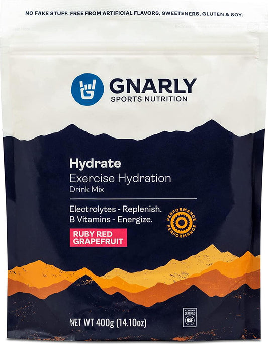 Gnarly Nutrition, Hydrate Electrolyte Powder with B Vitamins and Trace Minerals to Support Workouts, Ruby Red Grapefruit, 40 Servings