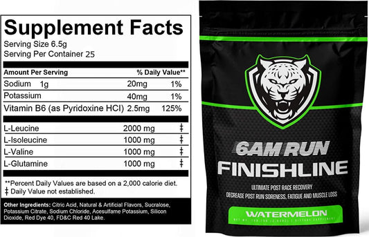6AM RUN | Finishline | BCAA Powder Amino Energy | Post Run Recovery Drink | Branch Chain Amino Acids Powder | Heal and Recovery Powder | Keto Post Workout Powder | Watermelon BCAA Powder | 50 Scoops