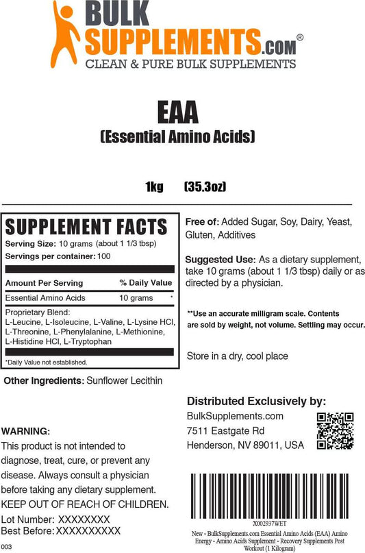 BulkSupplements.com Essential Amino Acids Powder (EAA) - EAAs Amino Acids Powder - Amino Acids Supplement - Amino Acid Nutritional Supplements - BCAA Powder - BCAA Supplements (1 Kilogram - 2.2 lbs)