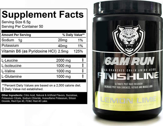 6AM RUN Finishline - Amino Energy Powder - Post Run Recovery Drink - Branch Chain Amino Acids Powder - Heal and Recovery Powder - Keto Post Workout Powder - Lemon Lime BCAA Powder - 50 Scoops