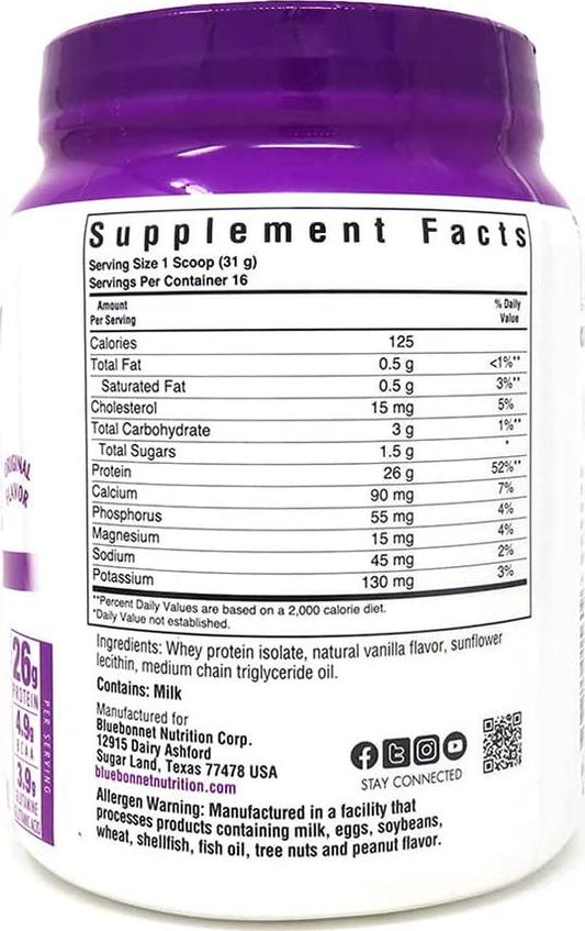 Bluebonnet Nutrition Whey Protein Isolate Powder from Grass Fed Cows, No Sugar Added, Non GMO, Gluten and Soy Free, Kosher Dairy, 17.6 Oz