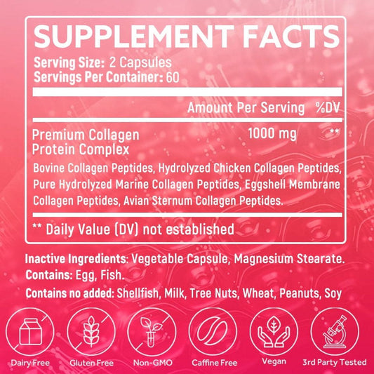 Bcuelov COLLAGEN MULTI COMPLEX - 3000 Mg, Supports Joint, Energy, Skin, Hair & Nail Health, Complex Collagen Capsules