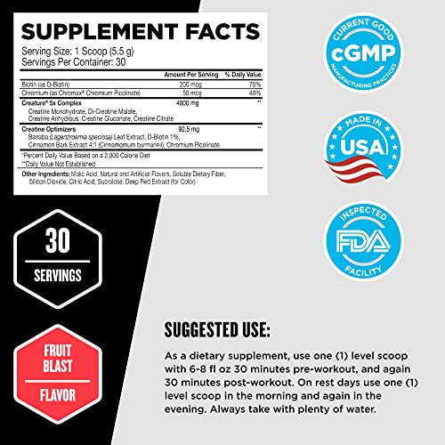 Beast Sports Nutrition Creature, Fruit Blast - 30 Servings - 5 Forms of Creatine + Creatine Optimizers - Improve Strength, Muscle Tone, Endurance, Recovery and Energy Production