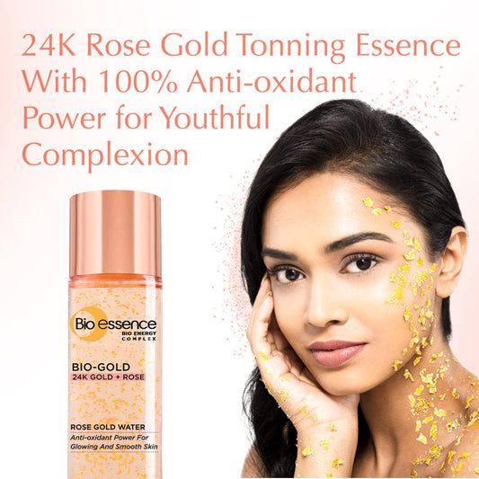 Bio-Essence Bio-Gold Rose Gold Water Toner Contains Pure 24K Gold Flakes with High Antioxidant Power, Hyaluronic Acid, Niacinamide, Peptides, Japanese Rose Extract (Eijitsu) and Unique Bio-E