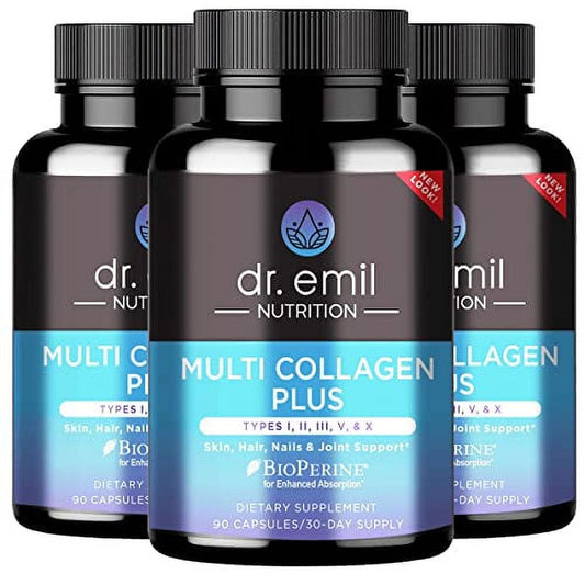 DR EMIL NUTRITION Multi Collagen plus Pills - Collagen Supplement to Support Hair, Skin, Nails, Joints, & Gut Health - Hydrolyzed Collagen Supplement (90 Count (Pack of 3)