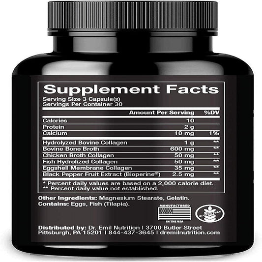 Dr. Emil Nutrition Multi Collagen plus Pills (Type I, II, III, V, X) for Anti-Aging, Hair, Skin, Nails and Joint Support, 30 Day Supply