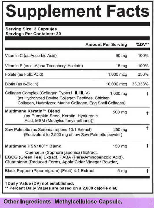 Collagen Pills 1000Mg Biotin 10000Mcg Keratin Saw Palmetto 2500Mg Hyaluronic Acid - Hair Skin and Nails Vitamins and DHT Blocker with Vitamin E Folic Acid Pumpkin Seed MSM Made in USA - 90 Count