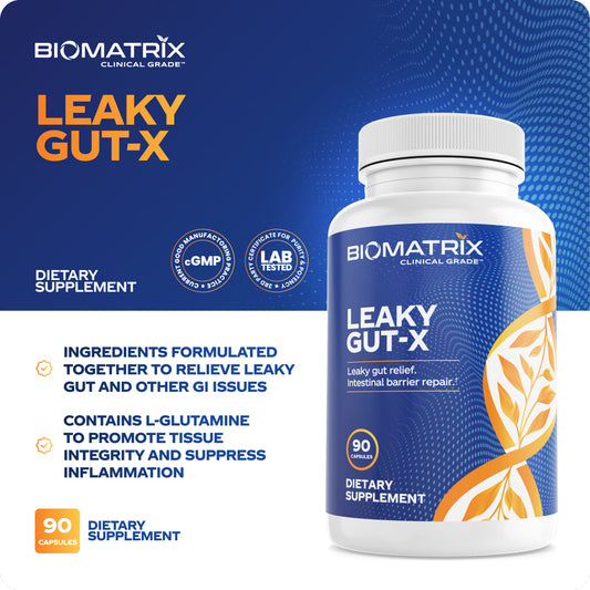 Biomatrix Leaky Gut, IBS Supplement W/ L-Glutamine, Turmeric Root - Support Mucosa | 90 Caps