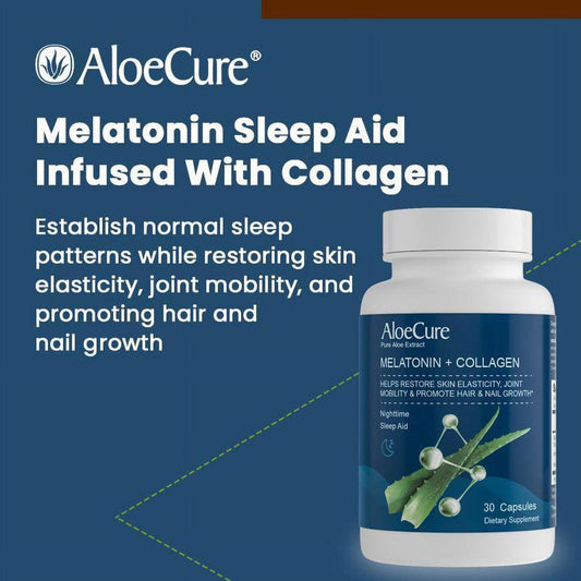 Aloecure Melatonin + Collagen, Natural Sleep Aid, for Men & Women, Natural Glow, Restores Skin Elasticity, Joint Mobility, Promotes Hair, Nail Growth, 2 Month Supply