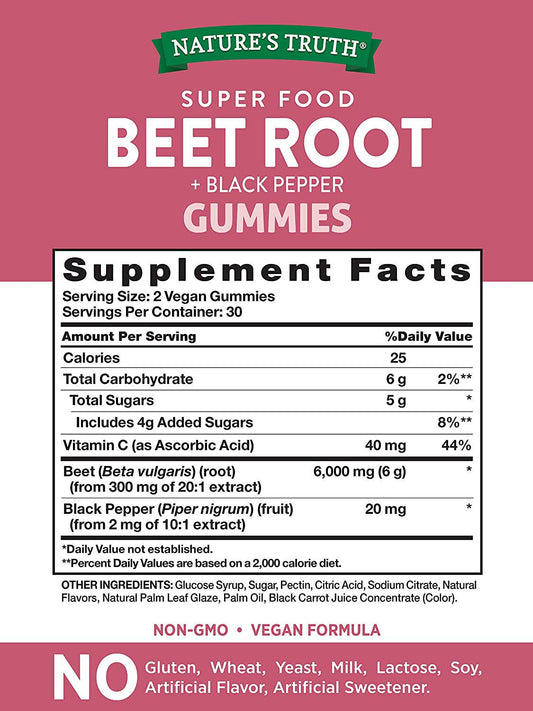Beet Root Gummies | 60 Count | Vegan, Non-GMO and Gluten Free | Super Food Supplement | with Black Pepper | Natural Strawberry Flavor | by Nature's Truth
