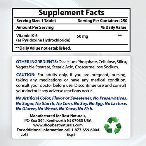 Best Naturals Vitamin B6 50 Mg 250 Tablets