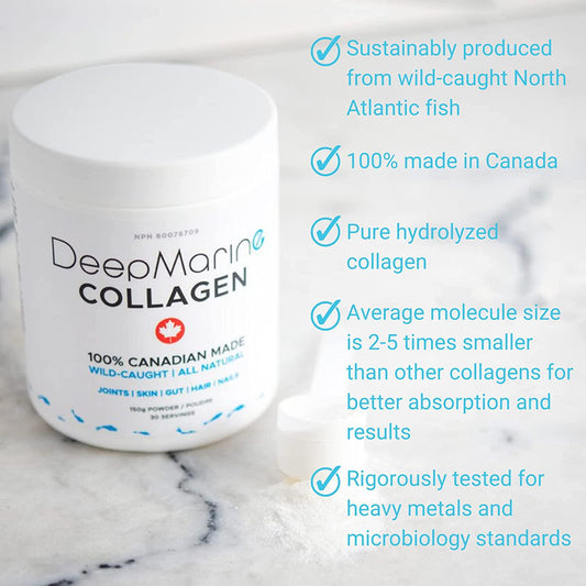 4 Tubs DeepMarine Collagen 100% Canadian Made Collagen Peptides, Wild-Caught Collagen Powder, Hydrolyzed Marine Collagen - 120 Day Supply - Gluten-Free, Tasteless, Odourless, Keto and Paleo Friendly