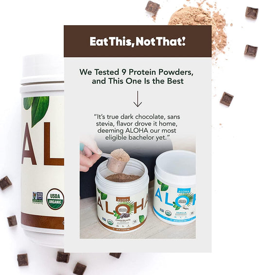 ALOHA Organic Plant-Based Protein Powder - NO-STEVIA Vanilla - Keto Friendly Vegan Protein with MCT Oil, 18.5 oz, Makes 15 Shakes, Vegan, Gluten-Free, Non-GMO, Erythritol-Free, Soy-Free, Dairy-Free and Only 3g Sugar