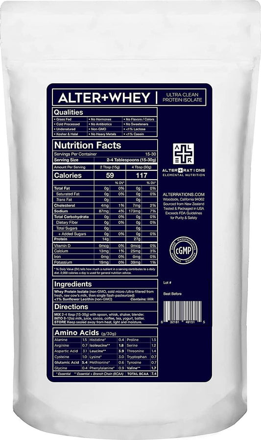 Alter + WHEY | Premium Whey Protein Isolate | Grass-Fed. Cold-Processed. Undenatured. | Ultra Clean. Hypoallergenic. Professional Grade. | Unflavored (1 Lb)