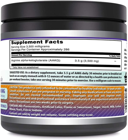 Amazing Formulas Arginine Alpha Ketoglutarate (AAKG) Dietary Supplements 2.2 Lbs -1kg - Powder (Approx. 200 Servings.) (Non-GMO,Gluten Free)