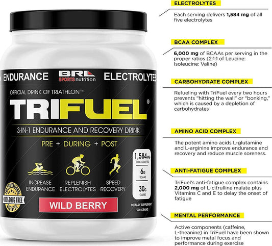 TRIFUEL - 3-in-1 Endurance and Recovery, Hydration, BCAA, Electrolyte Enhanced Drink (Wild Berry)