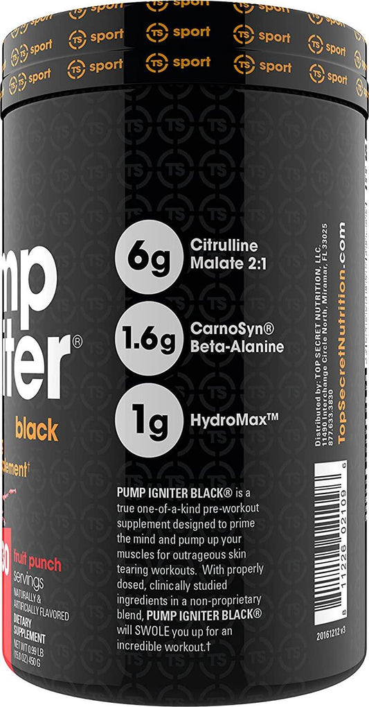 Top Secret Nutrition Pump Igniter Black Pre-Workout Supplement with Beta-Alanine, L-Citrulline, and Hydromax, Net Wt. 0.