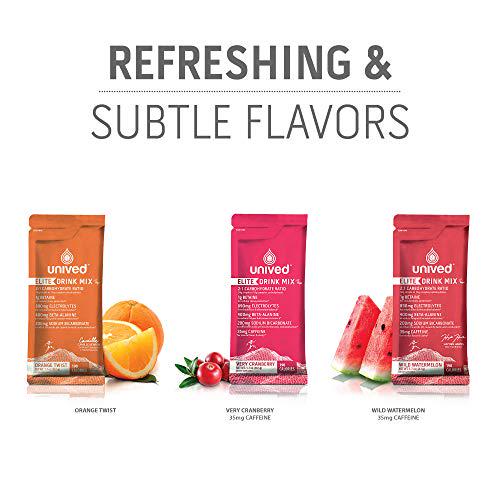 Unived Elite Drink Mix, 2:1 Carbohydrate Ratio, 45g Carbs, 1gm Betaine, 890mg Electrolytes, 400mg Beta-Alanine, 200mg Sodium Bicarbonate, 190kcal, Vegan and Gluten-Free, Orange Twist