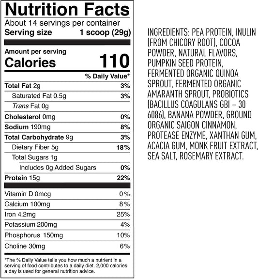 Vega Hello Wellness You ve Got Guts Blender Free Smoothie, Choco Cinnamon Banana (14 Servings, 14.3oz) - Plant Based Vegan Protein Powder, 5g Prebiotic Fiber, 0g Added Sugar