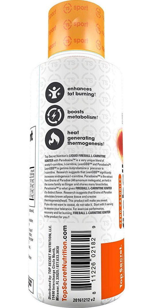 Top Secret Nutrition Fireball L-Carnitine Liquid w/Paradoxine, Cherry, 16 Ounce